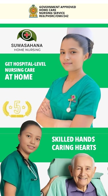 Welcome to Suwasahana Home Nursing Care, Sri Lanka’s trusted provider of specialized healthcare services delivered right to your doorstep. With a deep commitment to enhancing the quality of life for our clients, we focus on providing compassionate, personalized care that ensures comfort, dignity, and peace of mind.